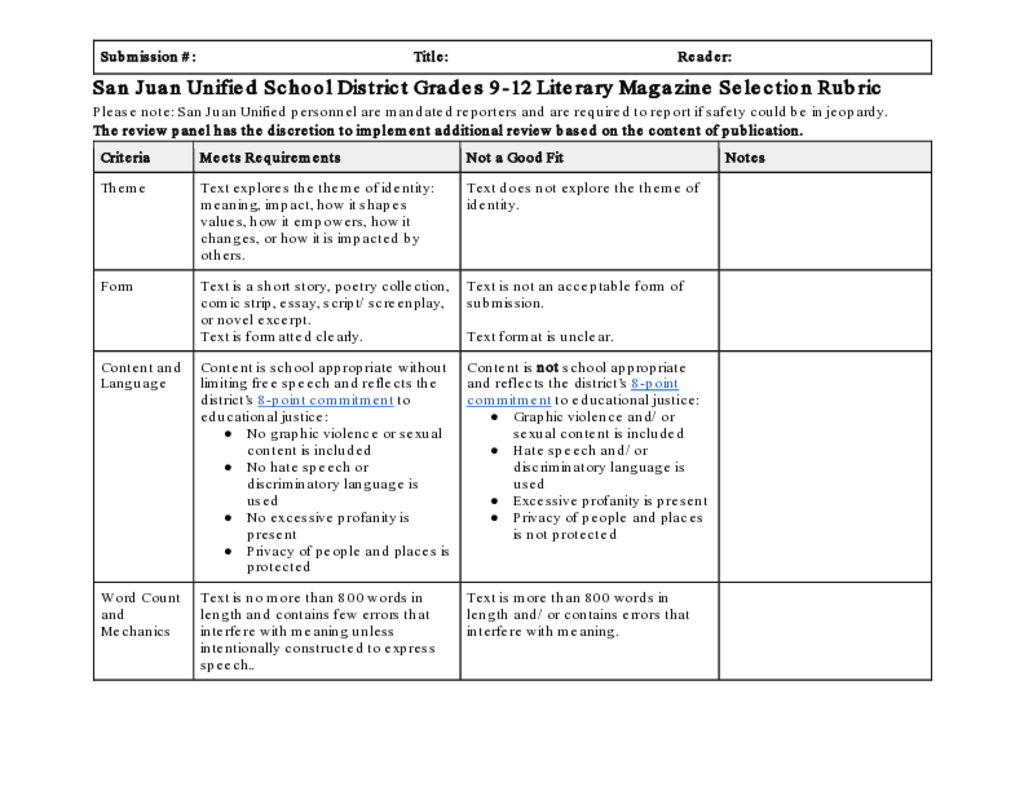 Publication is a part of the writing process that can get overlooked due to grading periods and schedules. In this session, we will explore the variety of prompts and writing opportunities students can engage with in ERWC modules and share a process for inviting students to publish their writing in a community literary magazine. We will share about our own journey toward creating a district-wide literary magazine in the San Juan Unified School District, including inviting and preparing student readers to review submissions for publication. Gain access to checklists and rubrics for inviting and celebrating a range of student writing around the theme of identity.